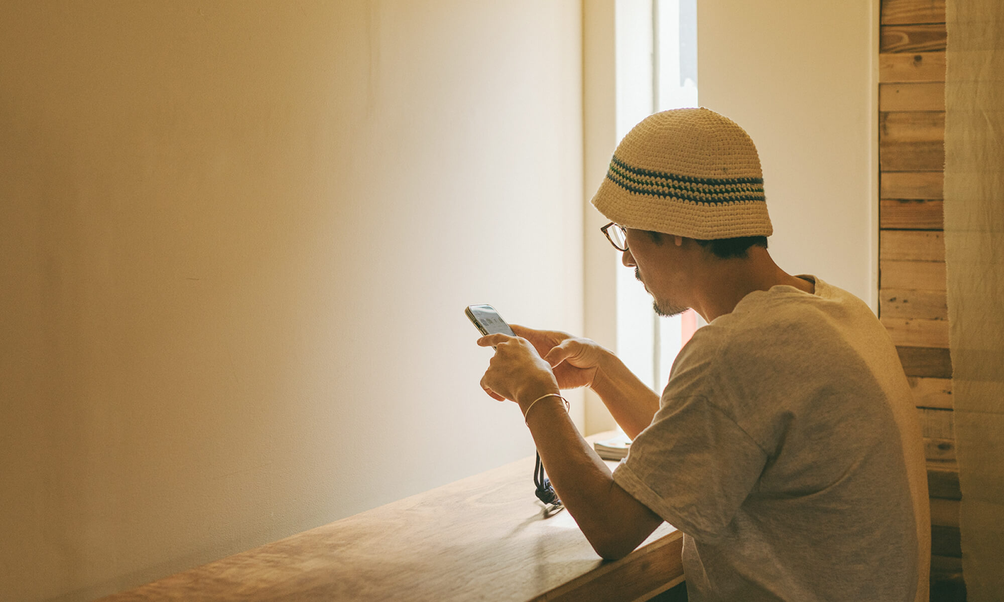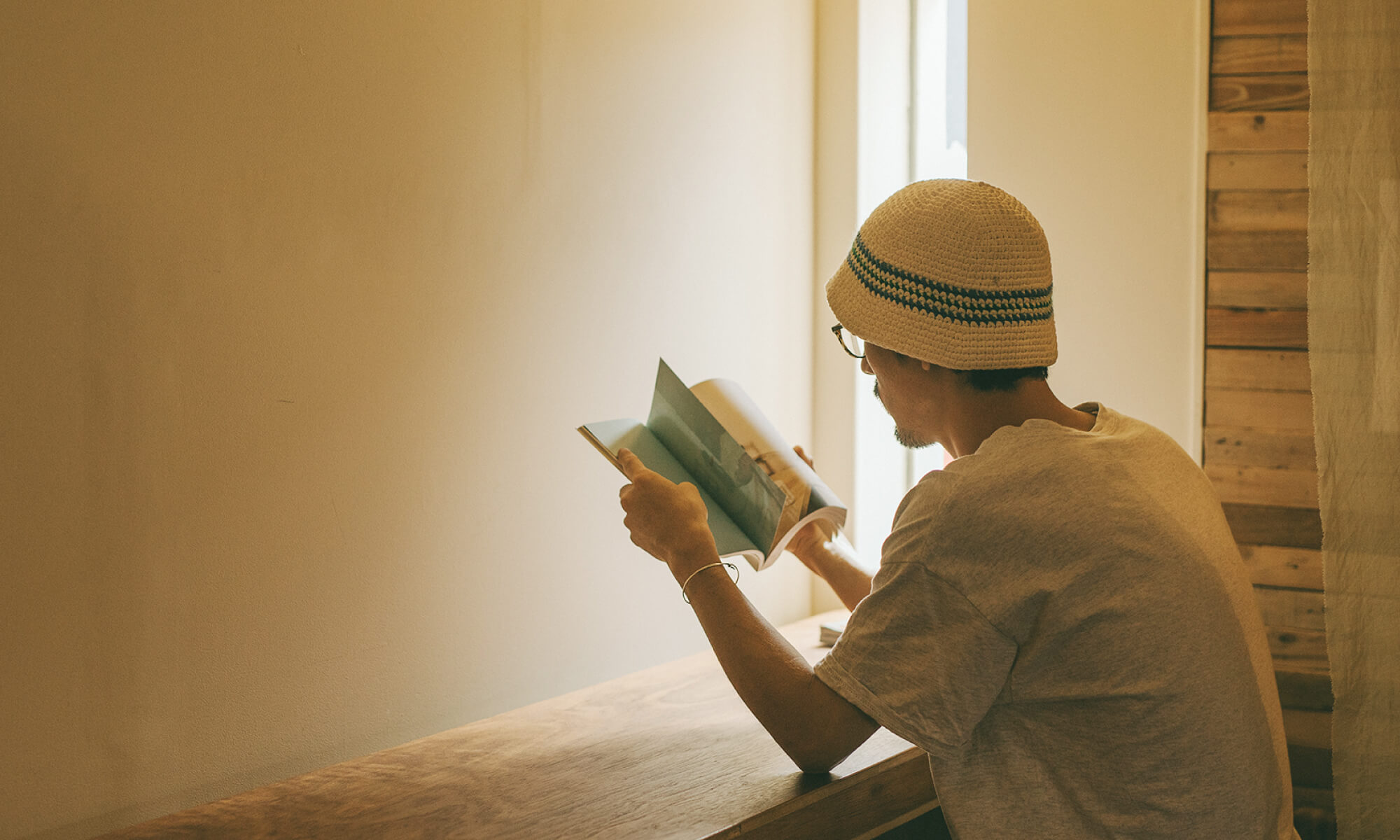 KIBIは長野県の小布施町という小さな町にある本屋・ギャラリー・デザインスタジオです。「Phoneより、本でいこう。」というコピーについて、個人的な話になってしまいますが、私はスマートフォンを長時間、触っていると頭がぼーっとしてしまい、なんだが、とても疲れてしまいます。しかし、本を読んでいると、平常心を保てます。それはプールに浮かんでいる時と同じような感覚を覚えます。という、とても個人的な思いを込めたコピーです。スマートフォンが決して悪ではなく、本を読むのも楽しいよね、というメッセージがあります。コピーの説明でした。機会があれば、一度KIBIへ遊びに是非いらしてください。